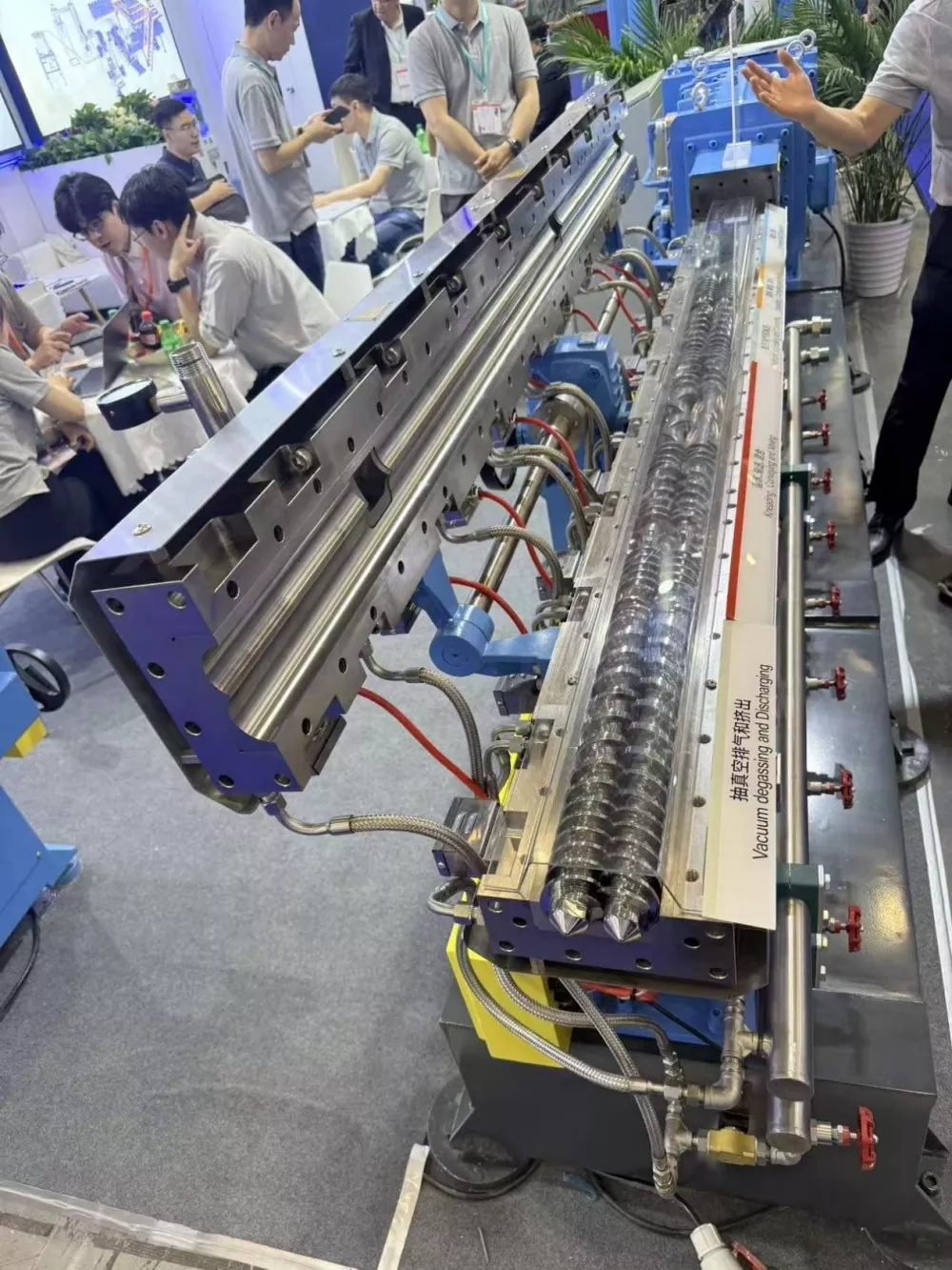 సెంట్రల్ ఆసియా మార్కెట్ యొక్క ప్రత్యేకతలను లక్ష్యంగా చేసుకుని, నన్హయ్యా దాని అనుకూలీకరించిన సేవా సామర్థ్యాలను కూడా హైలైట్ చేసింది. చిన్న స్క్రూలు (Ø15mm) నుండి పెద్ద బారెల్స్ (Ø940mm) వరకు మరియు ప్రామాణిక ఎక్స్‌ట్రాషన్ పరికరాల నుండి PE, చెక్క-ప్లాస్టిక్ మిశ్రమాలు మరియు PVC కోసం ప్రత్యేకమైన స్క్రూ సిస్టమ్‌ల వరకు, కంపెనీ కస్టమర్ ఉత్పత్తి అవసరాలకు అనుగుణంగా కాన్సెప్ట్ డిజైన్ నుండి పూర్తి ఉత్పత్తి లైన్ పరికరాల వరకు పూర్తి స్థాయి సేవలను అందిస్తుంది. ప్రదర్శనలో, నన్హయ్య మూడు స్థానిక ఉజ్బెక్ ప్లాస్టిక్ తయారీదారులతో ప్రాథమిక సహకార ఒప్పందాలను కుదుర్చుకున్నాడు. రెండు పార్టీలు తమ ఉత్పత్తి పరికరాల కోసం స్క్రూ మరియు బారెల్ అప్‌గ్రేడ్‌లపై లోతైన చర్చలు నిర్వహిస్తాయి.