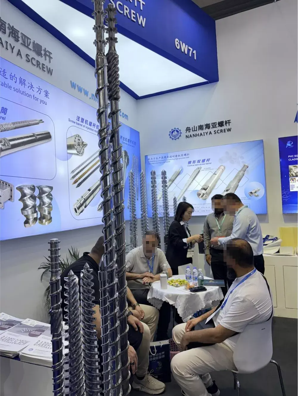 ప్రదర్శనలో, దిఝౌషన్ నన్హయ్యసందర్శకులతో బూత్ కిటకిటలాడింది. డ్యూయల్-అల్లాయ్ స్క్రూ మరియు బారెల్ మరియు నైట్రిడెడ్ స్క్రూ మరియు బారెల్ వంటి ఎగ్జిబిషన్‌లో ప్రదర్శించబడిన స్టార్ ఉత్పత్తులు పరిశ్రమ ప్రమాణాలను మించి పనితీరు పారామీటర్‌లతో విస్తృత దృష్టిని ఆకర్షించాయి. నన్హయ్య ఉత్పత్తులన్నీ 38CrMoAl అల్లాయ్ స్టీల్‌తో నిర్మించబడ్డాయి మరియు క్వెన్చింగ్ మరియు టెంపరింగ్, క్యారెక్టరైజేషన్ మరియు ప్రెసిషన్ మ్యాచింగ్‌తో సహా పలు ప్రక్రియల ద్వారా రూపొందించబడ్డాయి. ప్రత్యేకించి, బారెల్ డిశ్చార్జ్ పోర్ట్, హాని కలిగించే విభాగం, ఒక వినూత్నమైన, పూర్తి-వృత్తం కార్బైడ్ స్ప్రే పూతను కలిగి ఉంది, ఇది 62HRC యొక్క అంతర్గత కాఠిన్యాన్ని సాధించింది, ఇది పరిశ్రమ సగటు 58HRC కంటే గణనీయమైన మెరుగుదల.